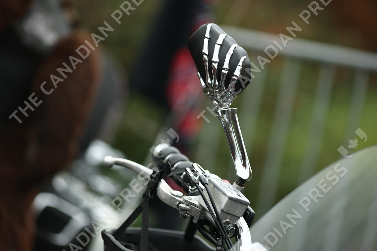 RUSSIA, MOSCOW - OCTOBER 11, 2025: Night Wolves Club bikers take part in a ride marking the closing of the 2025 riding season (Credit Image: © Valeria Kalugina/TASS via ZUMA Press)