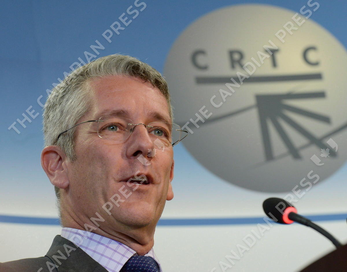 Canadian Radio-television and Telecommunications Commission Chairman Jean-Pierre Blais talks with media about the Bell-Astral decision, Thursday June 27, 2013 in Gatineau, Que. More Canadians are moving online to watch TV and listen to radio and choosing wireless over landlines for phone service, says the country's telecommunications watchdog.THE CANADIAN PRESS/Adrian Wyld