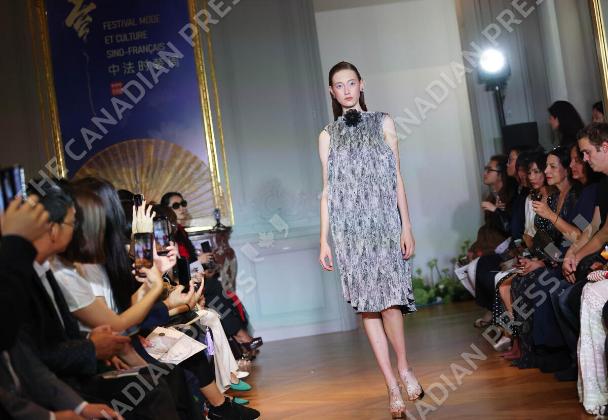 PARIS, Oct. 3, 2023 A model presents a creation of NuNu&NoNo collections designed by Chinese fashion designer Zhang En at Chinese culture center in Paris, France, Oct. 2, 2023. (Credit Image: å© Gao Jing/Xinhua via ZUMA Press)