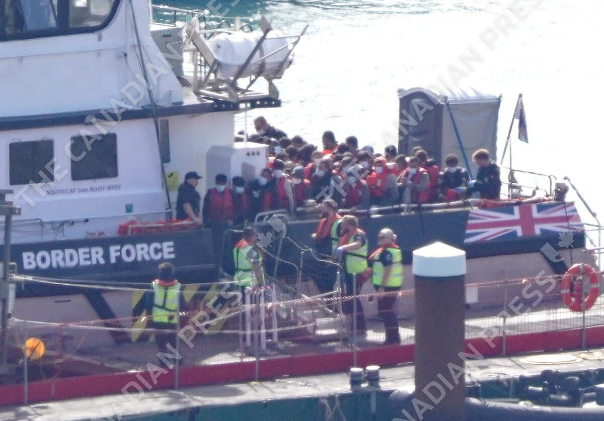 A group of people thought to be migrants are brought in to Dover, Kent. Picture date: Monday August 14, 2023.
