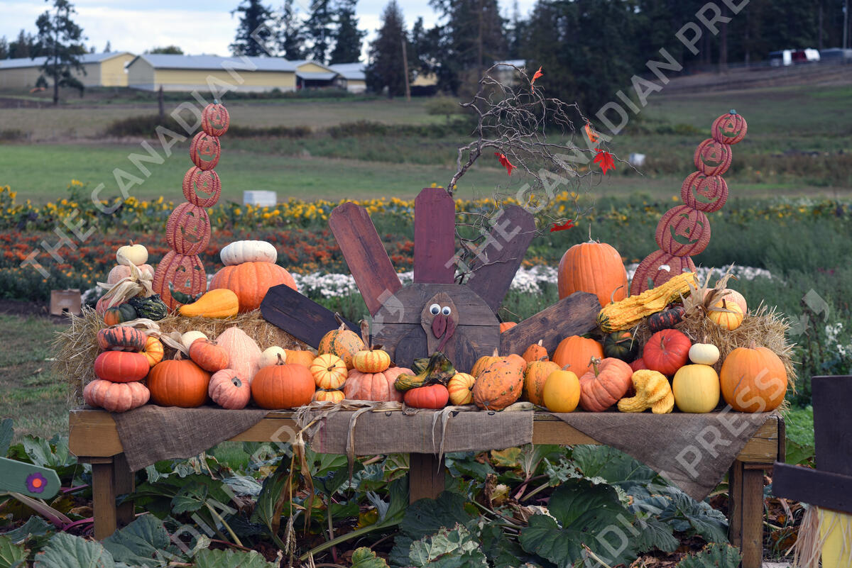 A Thanksgiving and Halloween themed display is pictured outside the Firbank Farm market in Central Saanich, British Columbia on September 28, 2023. THE CANADIAN PRESS IMAGES/Don Denton
