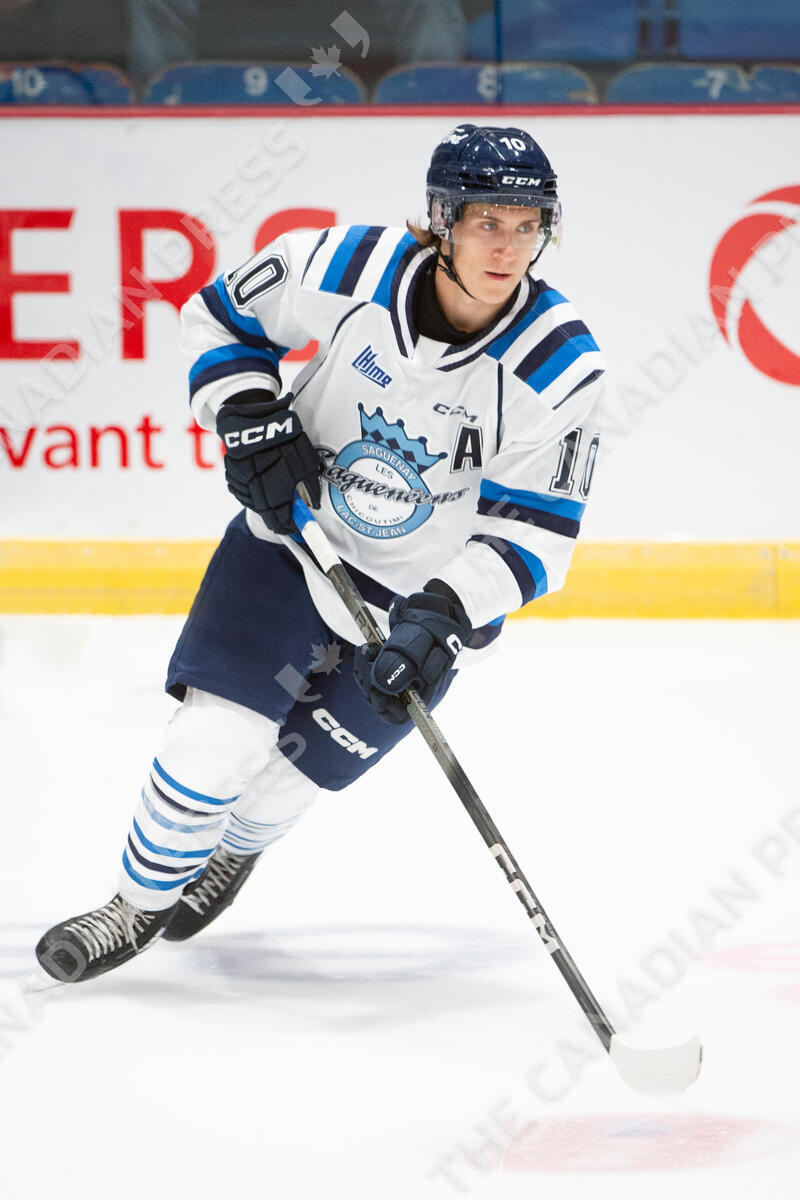 Alexis Morin (10) of the Chicoutimi Sagueneens (season 2023-24, QMJHL) is pictured in Drummondville, Que., Sept. 24, 2023. THE CANADIAN PRESS IMAGES/Ghyslain Bergeron