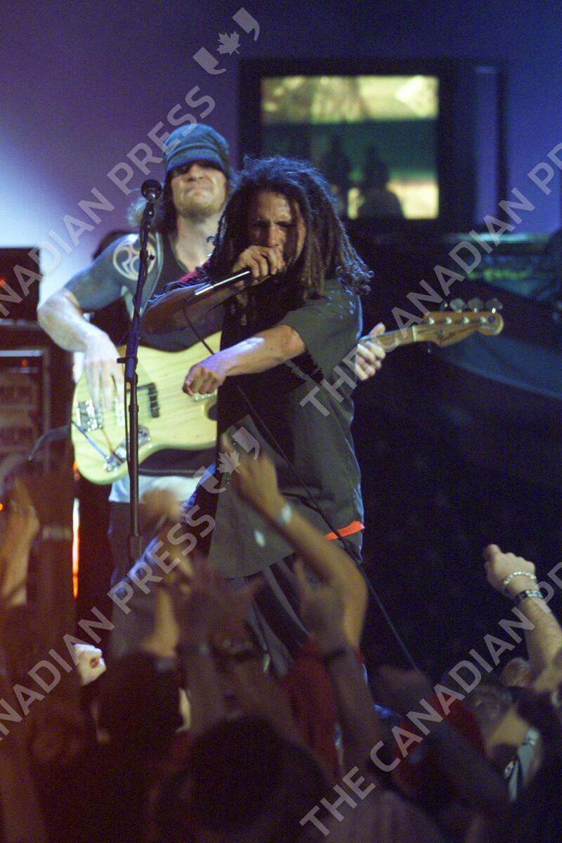 ** FILE **Rock group Rage Against The Machine performs at the MTV Video Music Awards at Radio City Music Hall in New York, in this Sept. 7, 2000, file photo. The lineup for this weekend's Coachella music festival will make you feel like it's the early 1990s. The festival will feature the reunited bands Rage Against the Machine, Crowded House, Jesus and Mary Chain and the Happy Mondays. (AP Photo/Suzanne Plunkett/FILE)