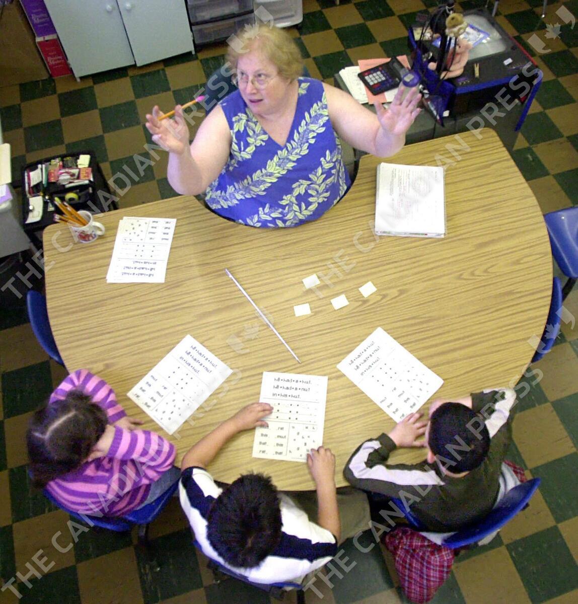 ** FILE ** Special Education teacher Sharon Brumbley gestures while working with first graders at Maple Elementary School in Springfield, Ore., in this April 13, 2004 file photo. (AP Photo/Don Ryan, File)