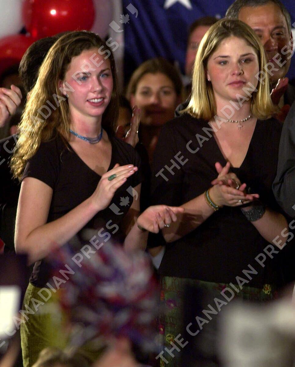 Repubilcan presidential candidate George W. Bush's twin daughters Barbara, left, and Jenna attend a Super Tuesday rally in Austin, Texas, Tuesday, March 7, 2000. Governor and Mrs. Bush have chosen to protect their daughters from the glare of the public for a number of reasons. One is a fear that the girls would be subjected to some of the early focus on the current first daughter, Chelsea Clinton. The other factor is simply the girls' choice to stay out of spotlight. (AP Photo/David J. Phillip)