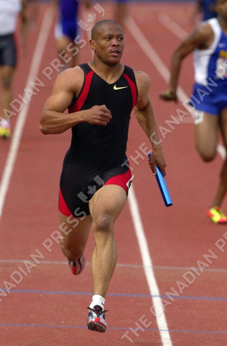 Maurice Green heads to the finish line ahead of his competitors on the anchor leg of the men's 400 meter relay April 22, 2000 at the Kansas Relays in Lawrence, Kan. The U.S. Olympic Trials begin Friday, July 14, 2000 at Sacramento State's Hornet Stadium, with the 100-meter final scheduled for Saturday. The 200 final, where Greene will face Michael Johnson barring any mishaps in the earlier rounds, is set for July 23, the final day of the meet. (AP Photo/Cliff Schiappa)