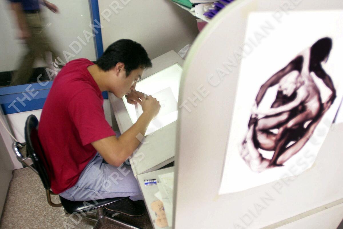 An artist draws a draft of a cartoon character Tuesday, Sept. 26, 2000 at the Shanghai Animation Studio in Shanghai, China. Cartoons are serious business for China - both a promising export and a tool to turn back a flood of imported children's pop culture that stirs deep unease among communist leaders who look on entertainment as an ideological tool. (AP Photo/Eugene Hoshiko)