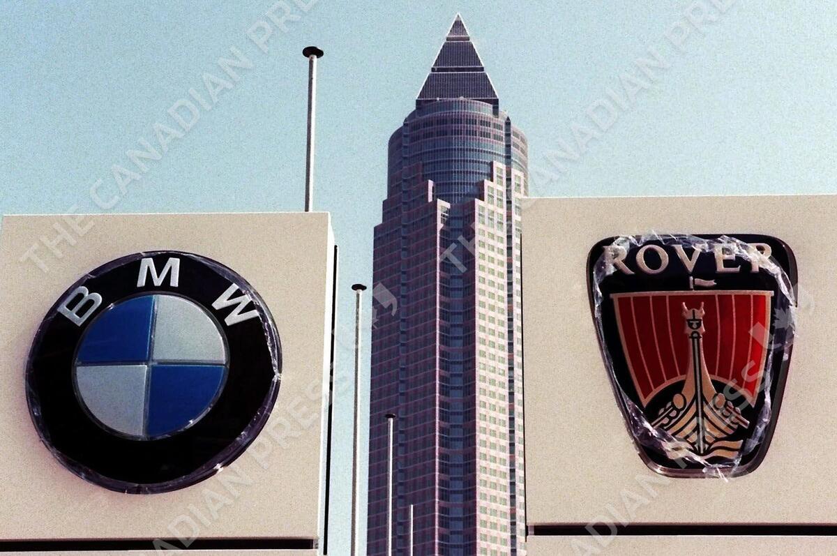 The brand signs of German BMW and British Rover car makers are seen besides the Frankfurt, Germany, fair tower in Sept. 12, 1999 photo, at the 58th International car show IAA 1999. Automaker BMW said Friday, April 14, 2000 it has received another offer for its British Rover subsidiary but gave few details on the bid. (AP Photo/Axel Seidemann)
