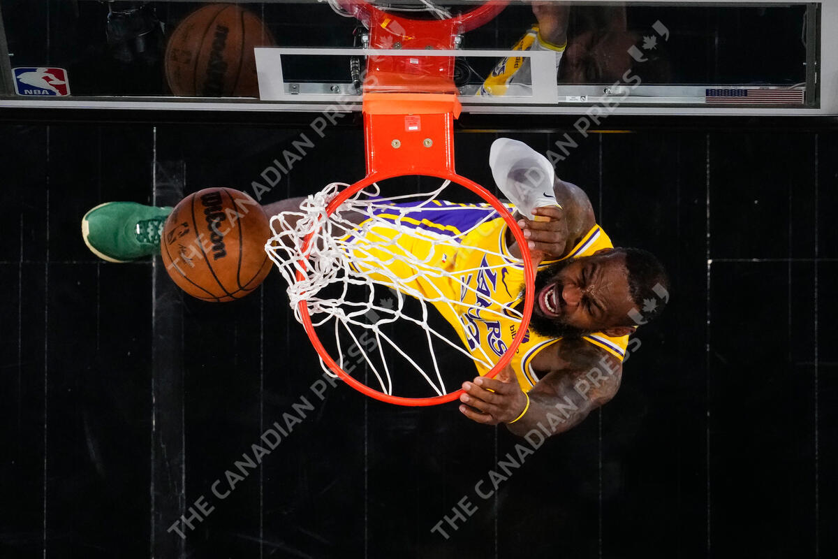 Los Angeles Lakers forward LeBron James (23) scores in the first half of an NBA basketball game against the Atlanta Hawks Tuesday, Jan. 30, 2024, in Atlanta. (AP Photo/John Bazemore)