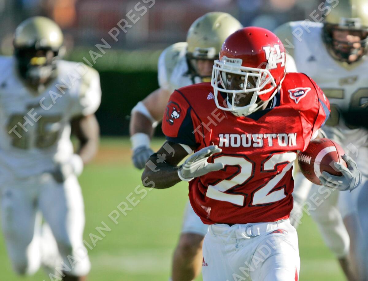 **FILE**Houston's Anthony Alridge (22) rushes for a gain of 51 yards during the third quarter of their NCAA football game against Central Florida Saturday, Oct. 28, 2006 in Houston. Last season Alridge moved between receiver and running back for the first half of the season before settling in at his current position and rushing for 956 yards on 95 carries to lead the nation with a 10.1 yards a carry average.(AP Photo/David J. Phillip, File)