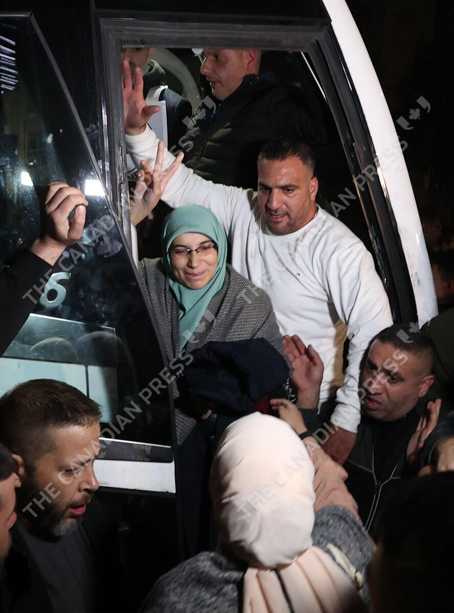 RAMALLAH, Dec. 1, 2023 A bus transferring released Palestinians arrives in the West Bank city of Ramallah Nov. 30, 2023. Hamas and Israel have agreed to extend their humanitarian ceasefire in the Gaza Strip, said Palestinian and Israeli officials in multiple statements on Thursday.. A total of 14 hostages, including 10 Israelis and four Thais, were freed on Wednesday night and received by Israeli hospitals for treatment and observation on Thursday morning, while 30 Palestinians were released from Israeli prisons. (Credit Image: å© Nidal Eshtayeh/Xinhua via ZUMA Press)