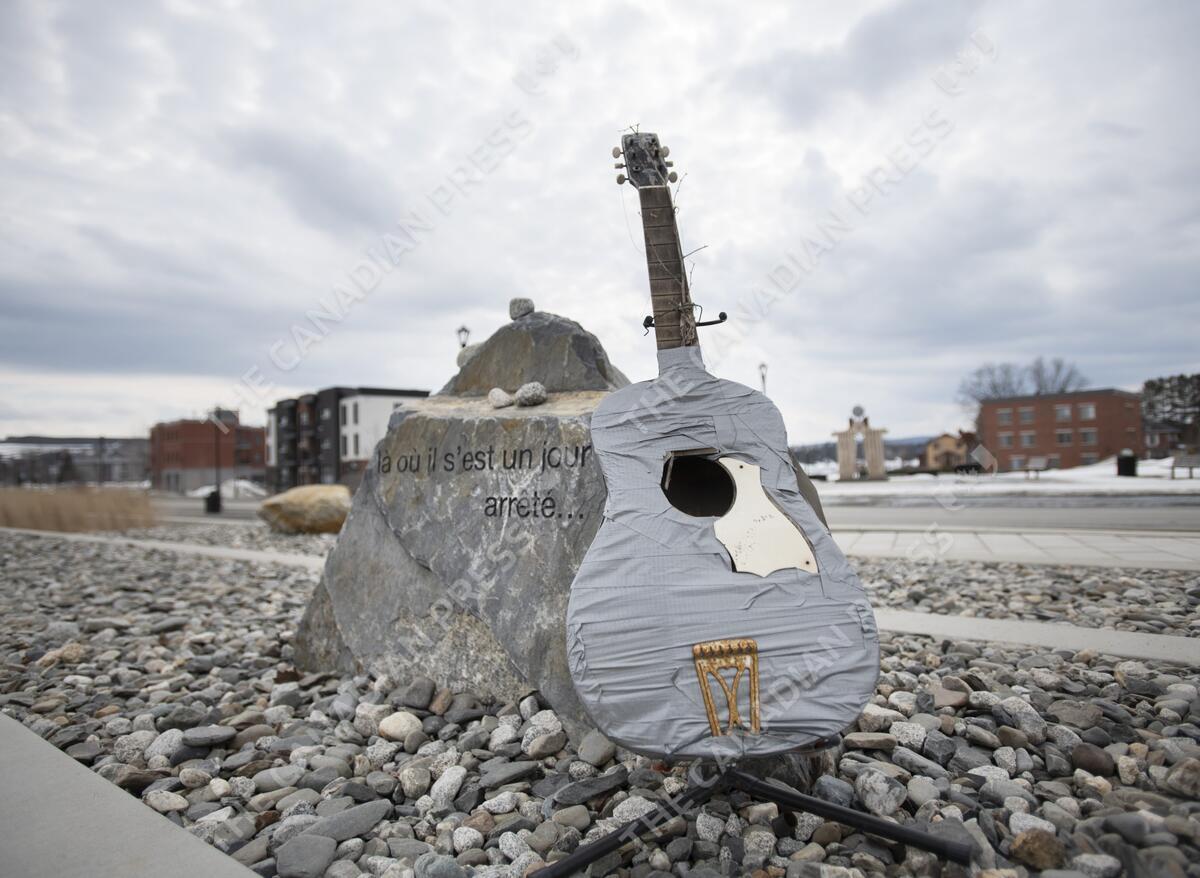 A guitar placed beside a rock at L‚ÄôEspace m ©moire in Lac-M ©gantic, Quebec, is photographed on Mar 18, 2022. Fred Lum/The Globe and Mail. This stone, with inspirational words etched onto it, was one of several stones excavated from the site of a rail disaster during a decontamination process. On July 6, 2013, 73 rail cars from the Montreal, Maine & Atlantic Railway left a parked area nearby and sped down to the Quebec town and exploded, killing 47 residents and levelling much of the downtown area.