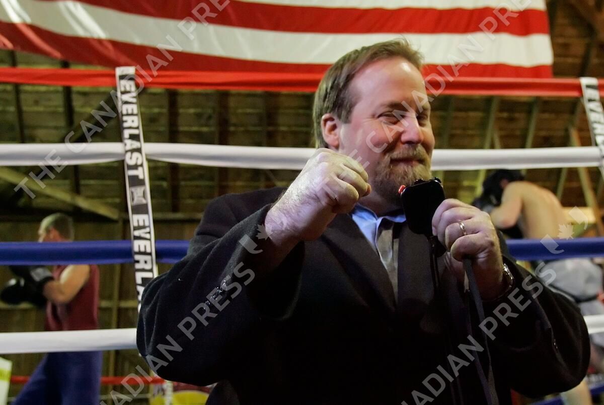 ** ADVANCE FOR WEEKEND EDTIONS, MARCH. 4-6 ** Steve Peace, boxing trainer and youth pastor at the Monroe Free Evangelical Church, poses for a photo, Thursday, Jan. 19, 2006, in front of his professional boxing ring fitted inside a barn in rural Phillips, Neb., a few feet from where draft horses were stabled nearly a century ago. Peace, says boxing is the avenue he uses to draw men closer to Christ. (AP Photo/Nati Harnik)