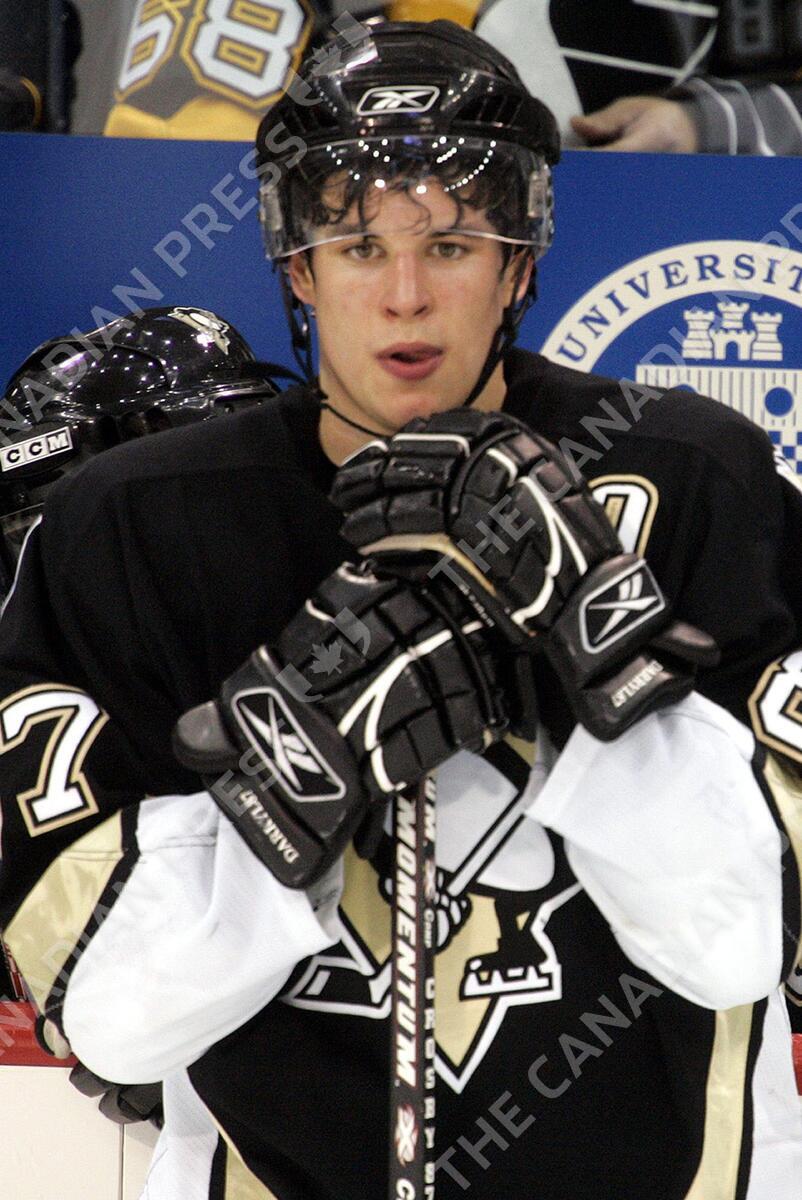 ** FILE ** Pittsburgh Penguins' Sidney Crosby looks on from the bench during NHL hockey against the Buffalo Sabres in this Dec. 16, 2005 file photo in Pittsburgh. (AP Photo/Gene J. Puskar)