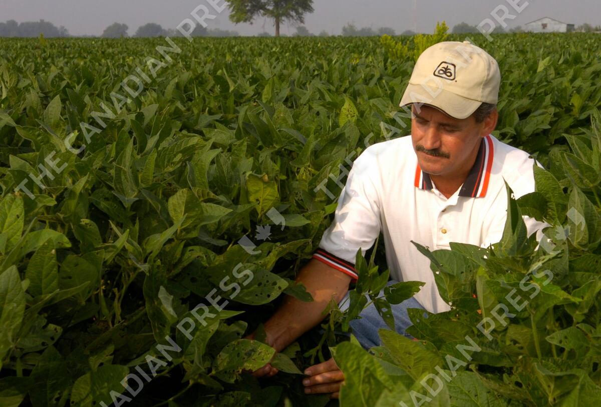 ** FILE ** Jeff Abbey looks over plants in a soybean field in a file photo Aug. 18, 2005, in Urbana, Ill. U.S. Trade Representative Rob Portman concedes it's unlikely that next week's WTO summit in Hong Kong will result in any breakthroughs on the thorny issue of agricultural trade, and that's just fine with many U.S. farm groups. (AP Photo/Darrell Hoemann, File)