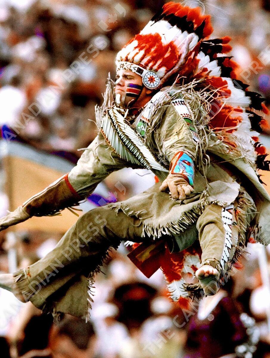 ** FILE ** Chief Illiniwek performs during halftime at a University of Illinois home game on Saturday, Oct. 14, 2000, in Champaign. The NCAA rejected Illinois' appeal of a decision banning American Indian mascots on Friday, Nov. 11, 2005, but said it will allow the university to keep its "Illini" and "Fighting Illini" nicknames. (AP Photo/Seth Perlman)