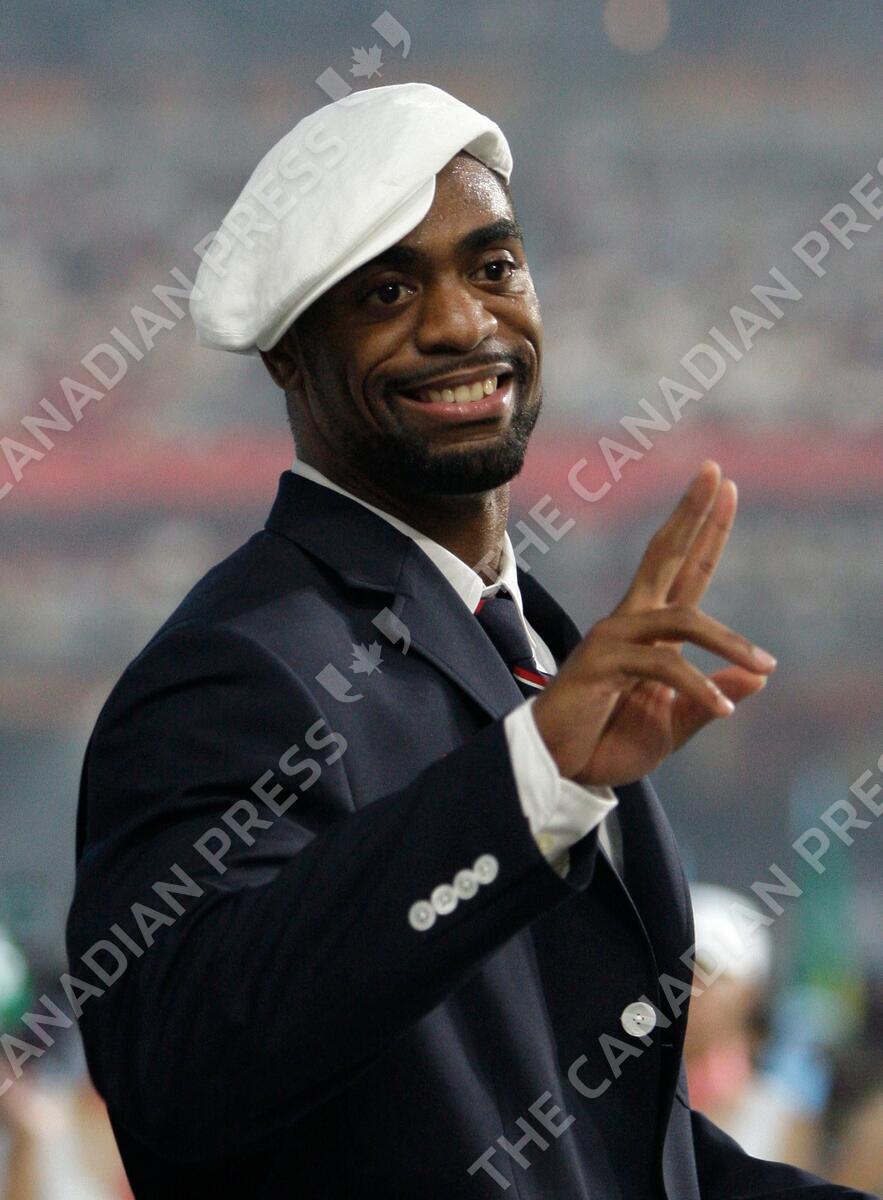 USA athlete Tyson Gay walks through the National Stadium during the opening ceremony for the Beijing 2008 Olympics in Beijing, Friday, Aug. 8, 2008. (AP Photo/David Phillip)