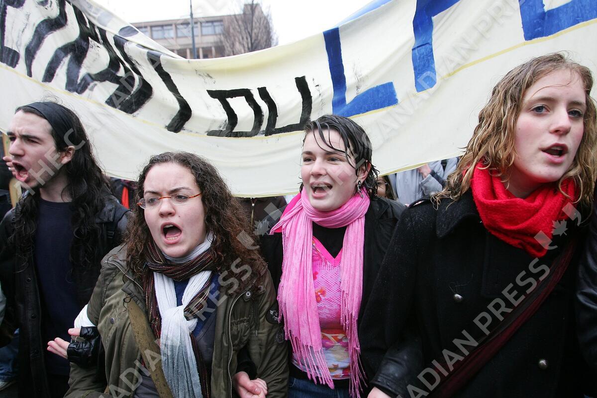 Protesters, mainly students, opposed to the French government's new plan for reducing joblessness, march in Rennes, western France, Tuesday, March 7, 2006. The government has initiated legislation that makes it easier for companies to fire young workers, in the hope that flexibility would spur hiring of 18- to 25-year-olds. Banner reads: "Withdraw the CPE," referring to the Contrat Premier Embauche, or First Job Contract. (AP Photo/Vincent Michel)