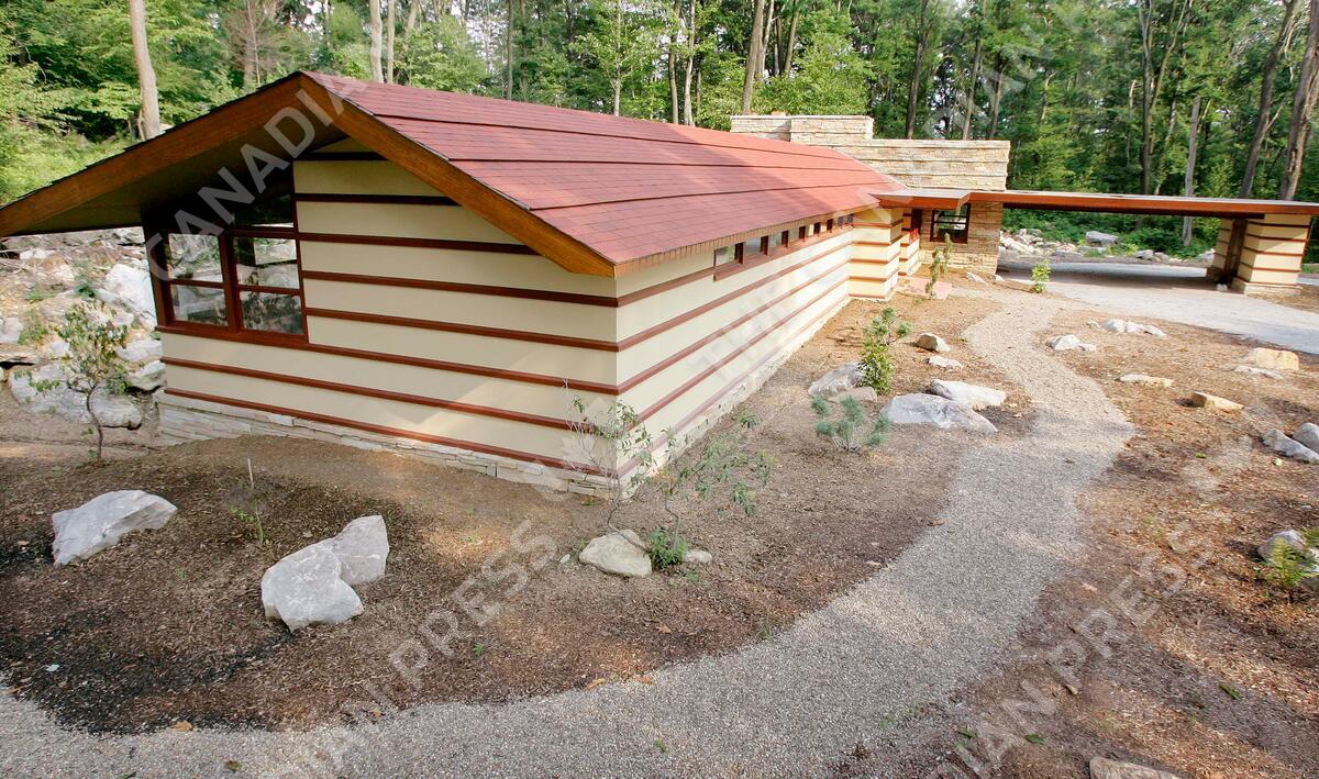 ** ADVANCE FOR MONDAY SEPT. 3 ** A Frank Lloyd Wright creation, the Duncan House, is seen on its new location in Acme, Pa., Thursday, Aug. 23, 2007. It has been moved from Lisle, Ill. to western Pennsylvania's rugged terrain, offering visitors a broad architectural experience tours of two impressive Wright homes nearby, and an overnight stay in this 1950s-era home. (AP Photo/Keith Srakocic)