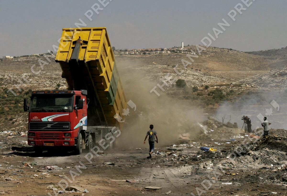 An Israeli truck dumps trash at a site near the village of Nelein, just outside the West Bank city of Ramallah, in this picture taken Tuesday, Aug. 28, 2007. Israeli waste disposal companies, lured by cut-rate dumping prices, have been sending dozens of trucks filled with refuse to villages like Nelein every day, to deposit unsupervised trash on land just across the border."Instead of the truck driver going to a site in Israel, dumping there and paying 1,500 shekels ($360) , for a single shipment, he comes here and pays only 150 shekels, ($36) , " said Hassan, whose family has turned 6 of its 16 acres of land into a landfill. (AP Photo/Nasser Ishtayeh)