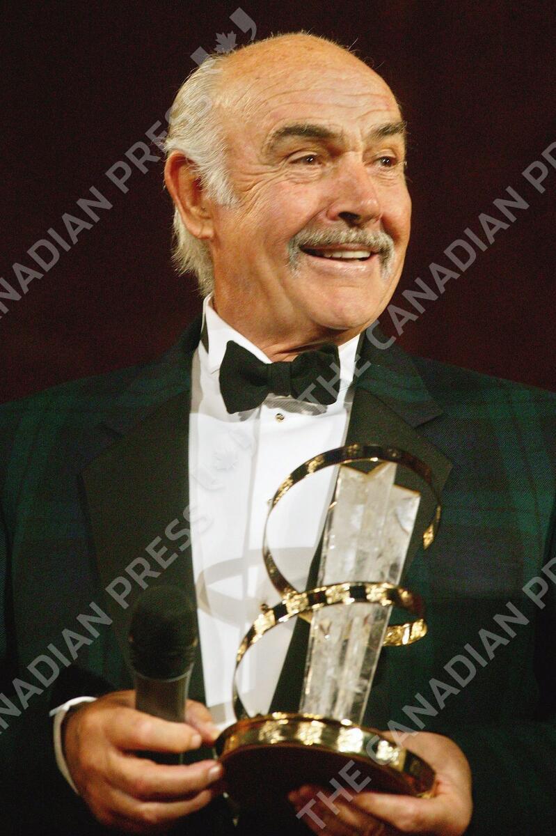 **FILE**Former James Bond actor Sean Connery holds his career achievement award at the 4th International Film Festival of Marrakech, Morocco, in this file photo from Dec. 7, 2004. (AP Photo/Jalil Bounhar-File)