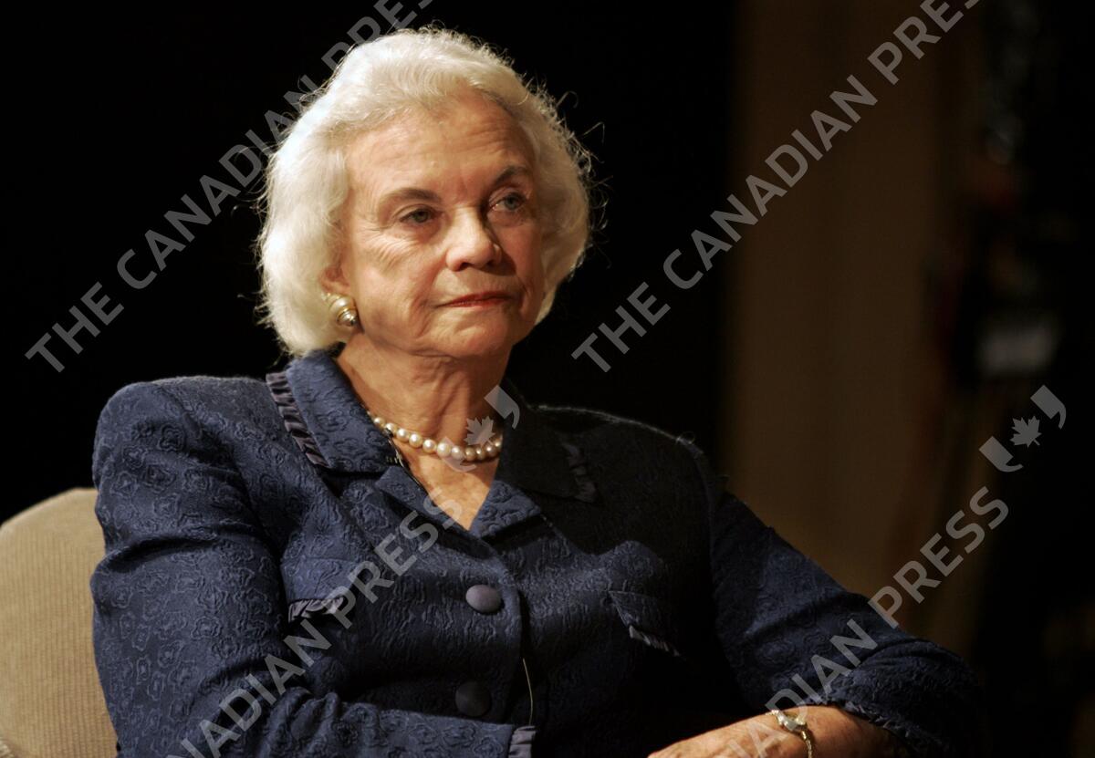 **FILE**Retiring Supreme Court Justice Sandra Day O'Connor pauses during a "constitutional conversation" with fellow justices Antonin Scalia and Stephen Breyer at the National Archives on April 21, 2005 in Washington. O'Connor is scheduled to appear at the Scottsdale,Ariz., Civic Center Library on Sunday, Sept. 18, 2005 to talk about and read from her newly released children's book, "Chico," which tells a story of her childhood.(AP Photo/Evan Vucci)