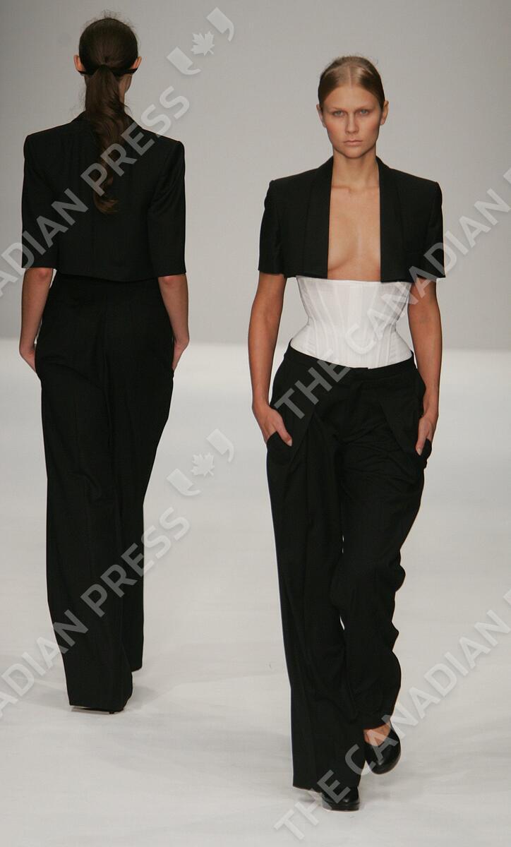 A model wears an outfit by British based Danish designerJens Laugesen during his fashion show, in London on the first day of London Fashion Week Sunday Sept. 18. 2005. The designers are showing their Spring/Summer 2006 collections. (AP Photo/Alastair Grant)