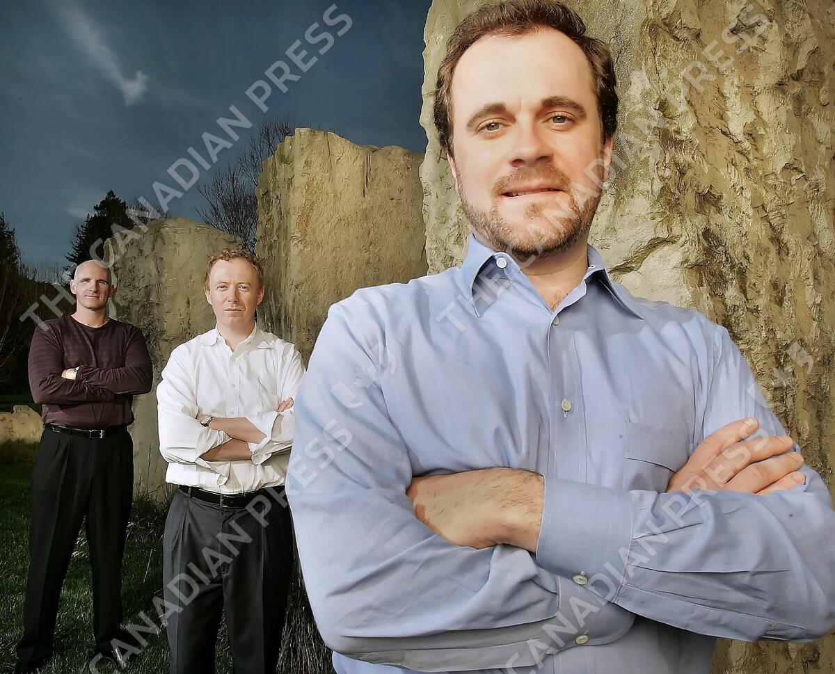 ** ADVANCE FOR USE MARCH 6, 2006 ** Joe Firmage, right, chairman and CEO of ManyOne, Boston University Prof. Cutler Cleveland, left, director of the Center for Energy and Environmental Studies and Peter Saundry, center, executive director of the National Council for Science and the Environment, unveiled a next-generation multimedia Internet medium called the Digital Universe, on Thursday, Jan. 5, 2006, in Scotts Valley, Calif. It's a lofty ambition, a Web site that's the Internet equivalent of the Public Broadcasting Service, a user-supported resource that pays top academics to create authoritative maps, articles and links to third-party content related to virtually any scholarly topic. (AP Photo/ Tony Avelar)