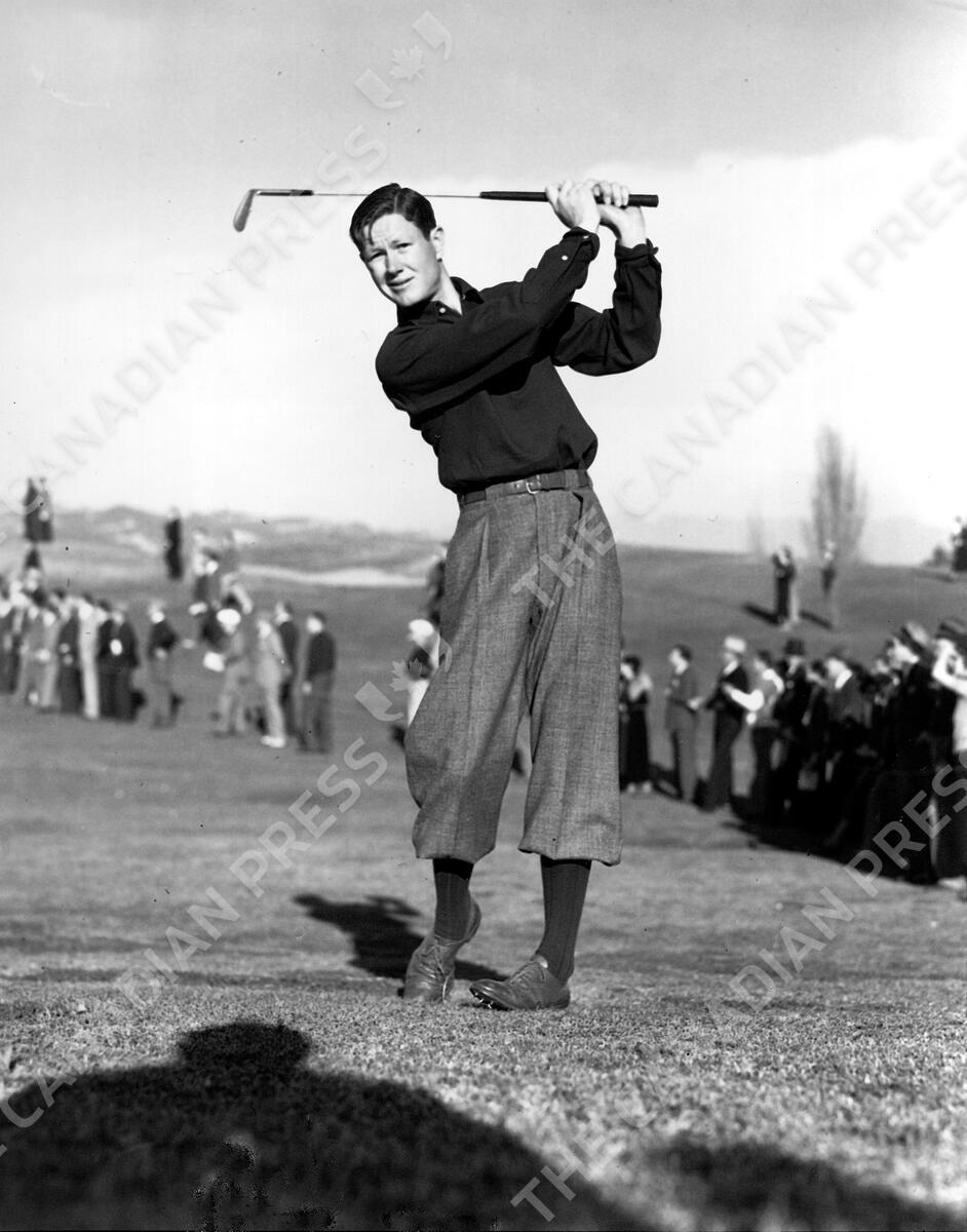 **FILE** Byron Nelson is shown practicing for the L.A. Open at the Los Angeles Country Club, in Los Angeles in this Jan. 12, 1936 file photo. Nelson, who had the greatest year in the history of professional golf when he won 18 tournaments in 1945, including a record 11 in a row, died Tuesday, Sept. 26, 2006. He was 94. (AP Photo)