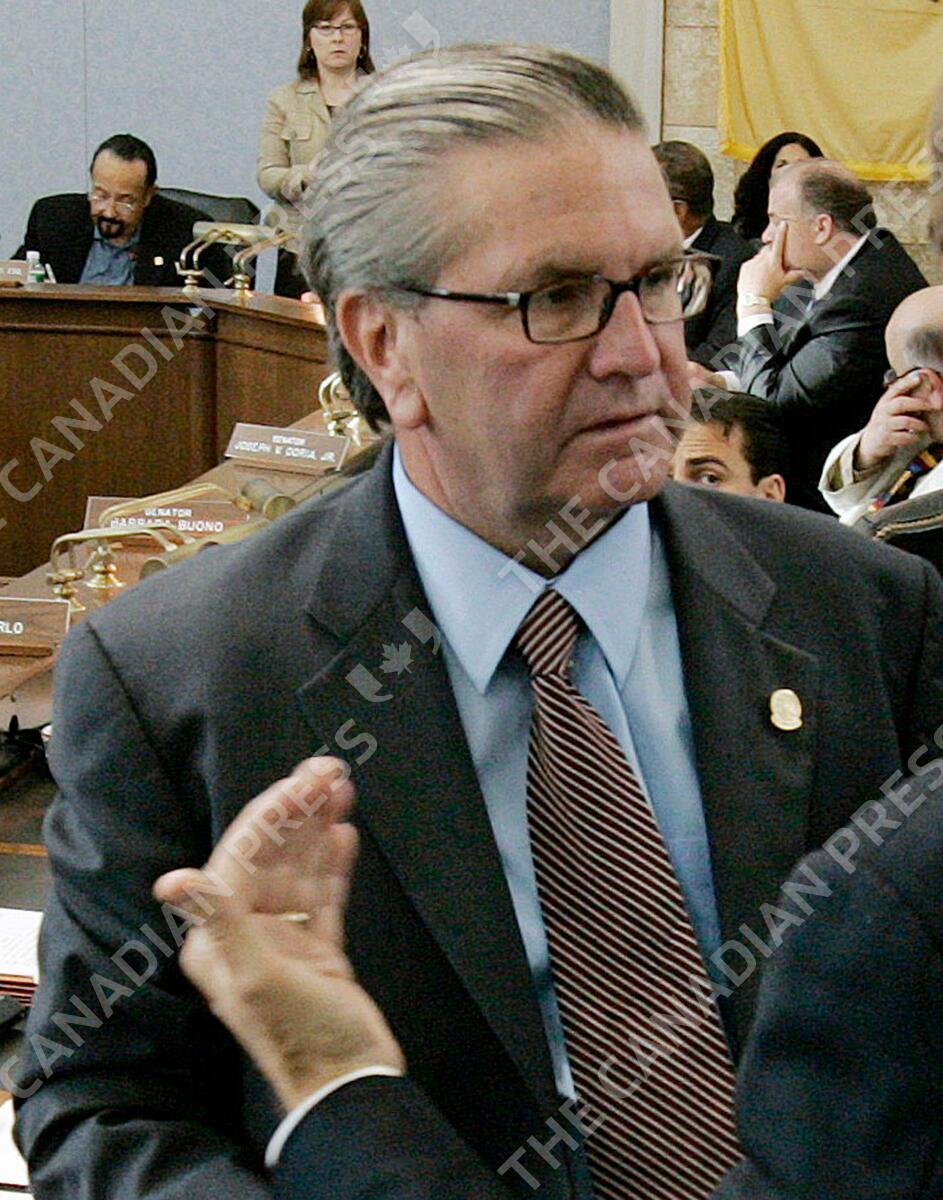 ** FILE ** New Jersey Senate Majority leader Bernard Kenny Jr., D-Hudson, talks with a fellow senator at a Senate Budget Committee hearing in Trenton, N.J., in this July 7, 2006, file photo. State Sen. Kenny fell while jogging early Wednesday morning, July 18, 2007, and was hurt, police said. Kenny told officers he stepped into a pothole and fell about 6:50 a.m. near his home, police Chief Carmen LaBruno said. (AP Photo/Mel Evans)