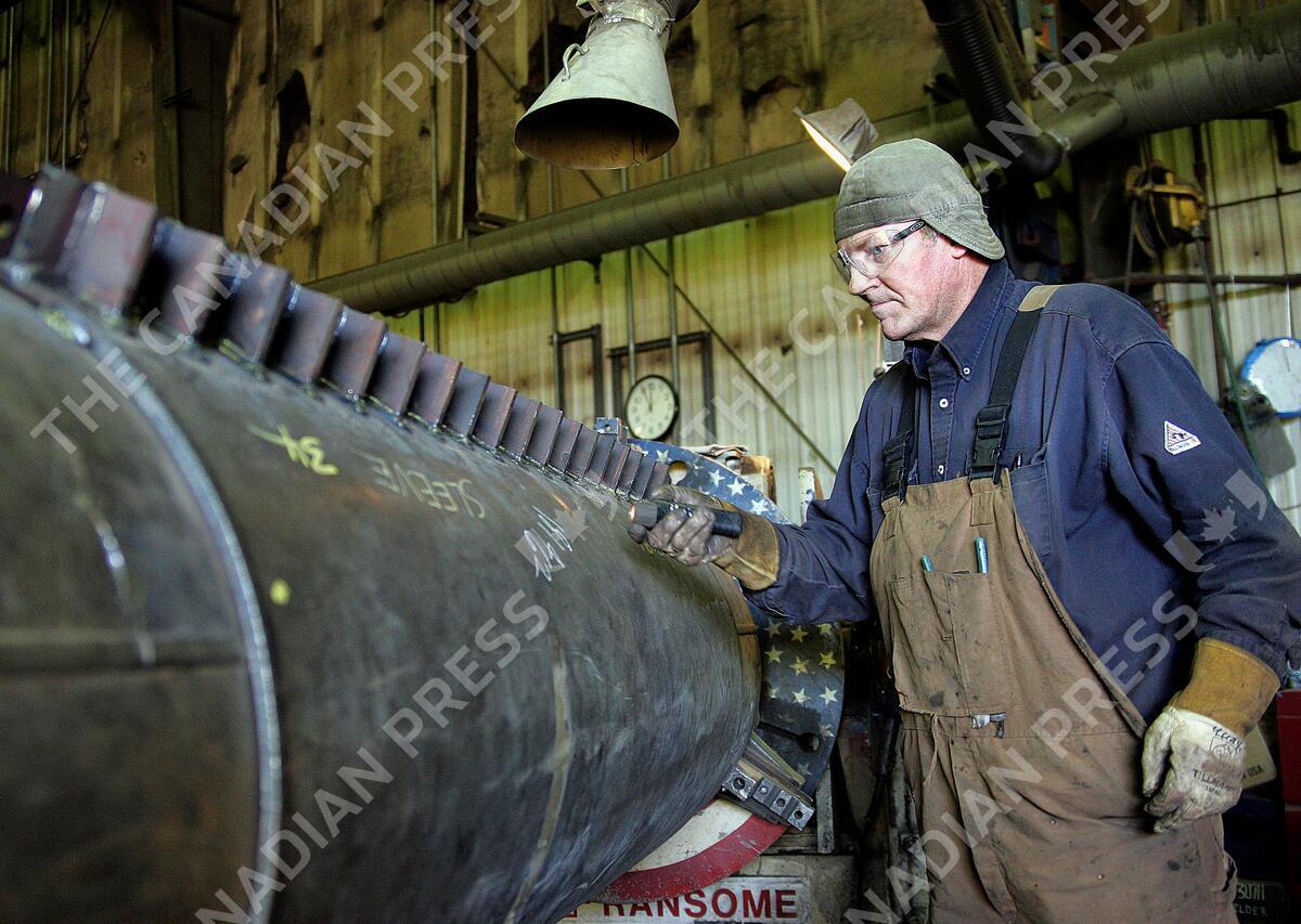 ** ADVANCE FOR FRIDAY AUG 3 ** Keith Holms, from Texas works on a steel sleeve used to repair weak spots on BP's oil transit lines in the Prudhoe Bay oil field on Alaska's North Slope at the VECO Operations Inc. shop in Deadhorse, Alaska, Aug. 9, 2006. Bill Allen, the former head of VECO Corp. who pleaded guilty to bribing state legislators, sent generous campaign donations to state and congressional lawmakers who supported oil and gas development. (AP Photo/Al Grillo)
