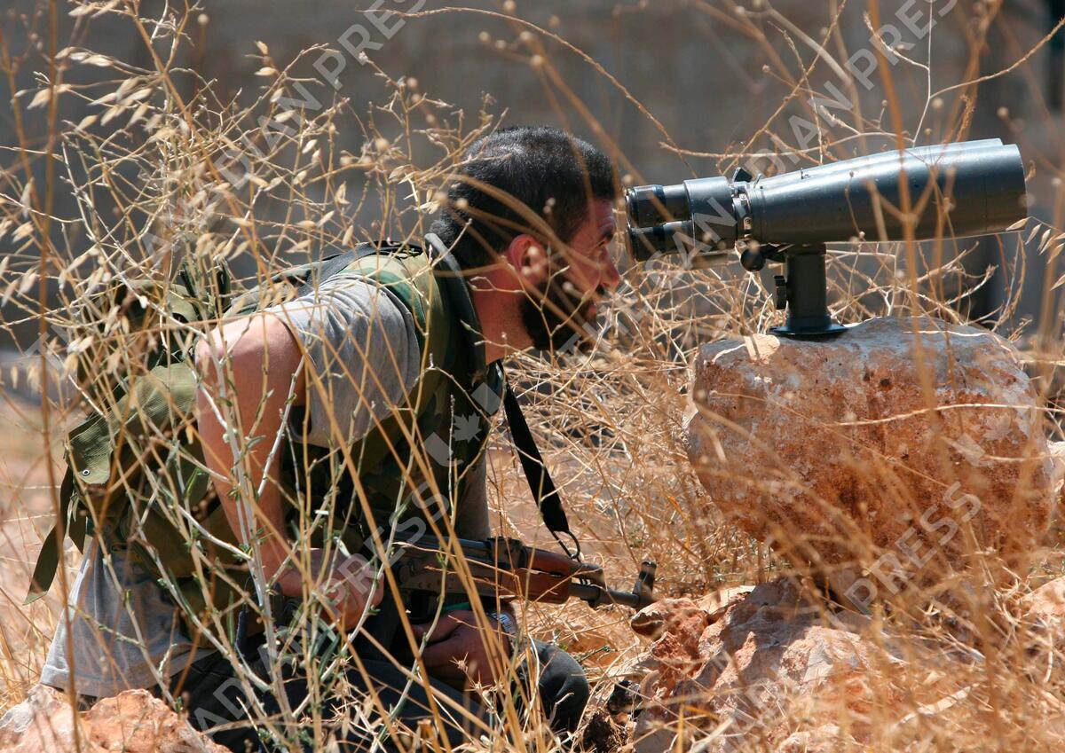 ** ONE OF 20 PHOTOS IN A GROUP ENTRY THAT WON THE APME 2007 PHOTO CONTEST NEWS CATEGORY--FILE **A Hezbollah fighter, who refused to be identified, uses binoculars to watch over Israeli army positions on the outskirts of the southern village of Aitaroun, close to the town of Bint Jbeil, in this Aug. 16, 2006, file photo. (AP Photo/Mohammed Zaatari/FILE)