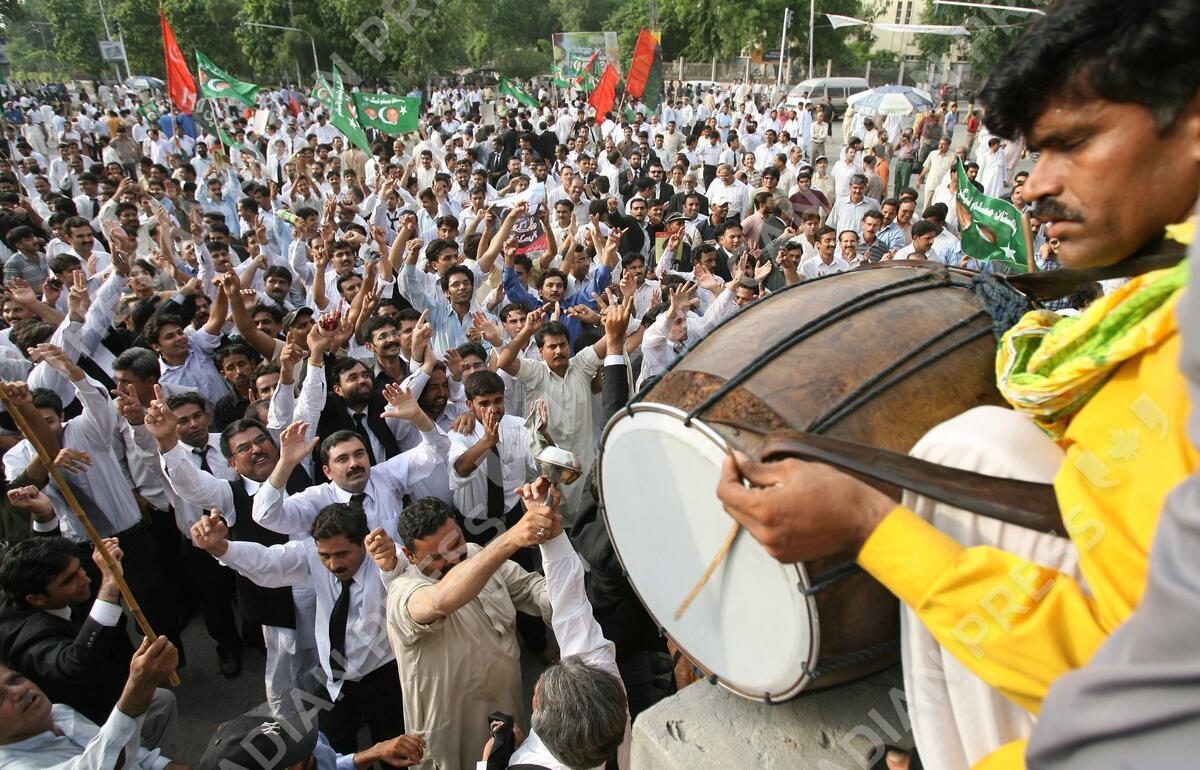 ** CORRECTS SPELLING TO FROM MOHAMMAD TO MOHAMMED ** Supporters of Pakistan's Supreme Court judge Iftikhar Mohammed Chaudry celebrate his victory in Lahore, Pakistan on Friday, July 20, 2007. The Supreme Court reinstated Pakistan's top judge, ruling that his suspension by key U. S. ally President Gen. Pervez Musharraf was 'illegal.' (AP Photo/K.M.Chaudary