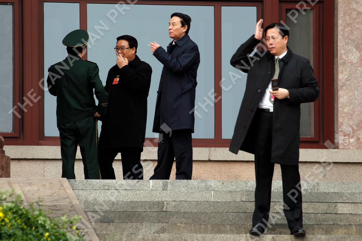 In this photo taken Sunday, March 4, 2012, Chinese delegates attending a meeting at the Great Hall of the People smoke cigarettes in Beijing, China. China's state media said Sunday, Dec. 29, 2013, China has banned its officials from smoking in public to set an example to the rest of the country that has the world's largest number of smokers. (AP Photo/Ng Han Guan)