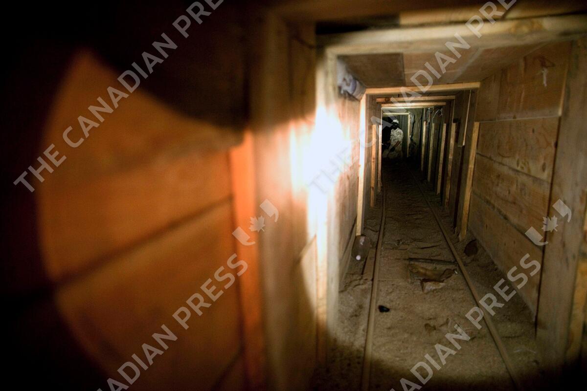File-This Nov. 4, 2010 file photo shows a Mexican Army soldier standing guard inside a clandestine tunnel connecting warehouses on either side of California's border with Mexico in Tijuana. More than 75 such underground passages have been found along the border since 2008, concentrated largely in California and Arizona. The job of searching these networks can be dangerous, so the U.S. Border Patrol is unveiling its latest technology in the underground war, a wireless, camera-equipped robot that can do the job in a fraction of the time. (AP Photo/Guillermo Arias)
