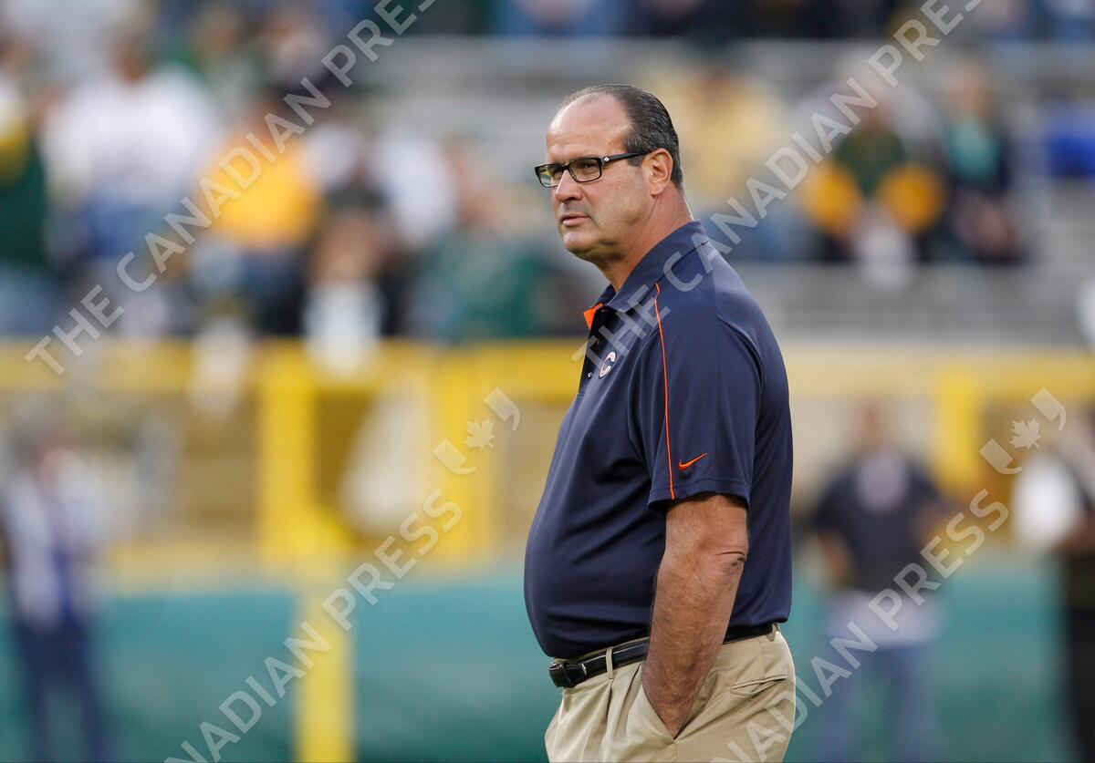 FILE - In this Sept. 13, 2012 file photo, Chicago Bears offensive coordinator Mike Tice walks on the field before an NFL football game against the Green Bay Packers, in Green Bay, Wis. The Atlanta Falcons say Tice will become their new offensive line coach. The team announced the move Wednesday, Jan. 8, 2014.(AP Photo/Mike Roemer)