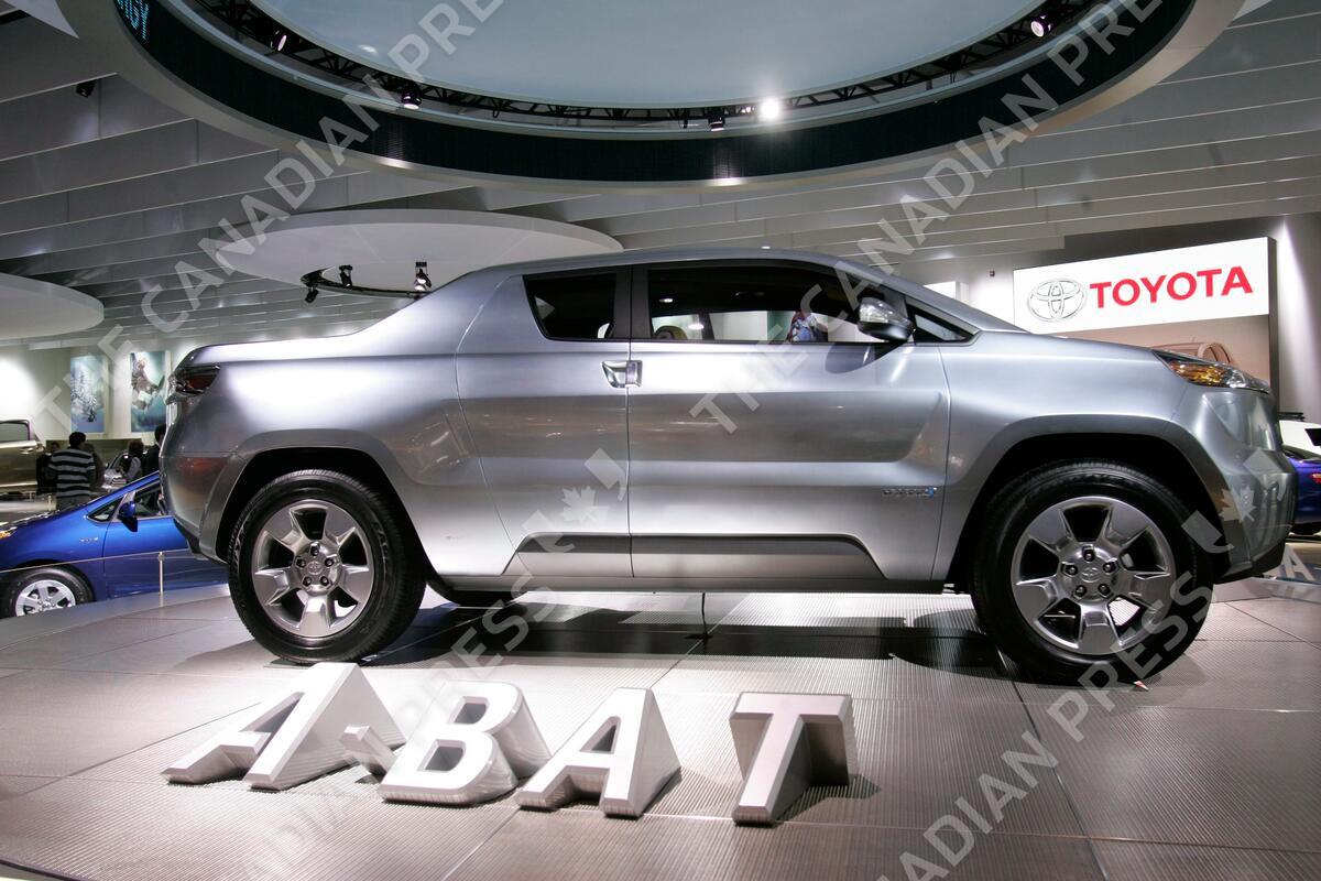 FILE - In this Jan. 15, 2008, file photo, a Toyota A-BAT concept is displayed at the North American International Auto Show in Detroit. The A-Bat pickup truck had a 4-foot bed that could be extended to 6 feet as well as a four-passenger compartment. Toyota shelved it when the recession slowed demand for pickups. (AP Photo/Kiichiro Sato, File)