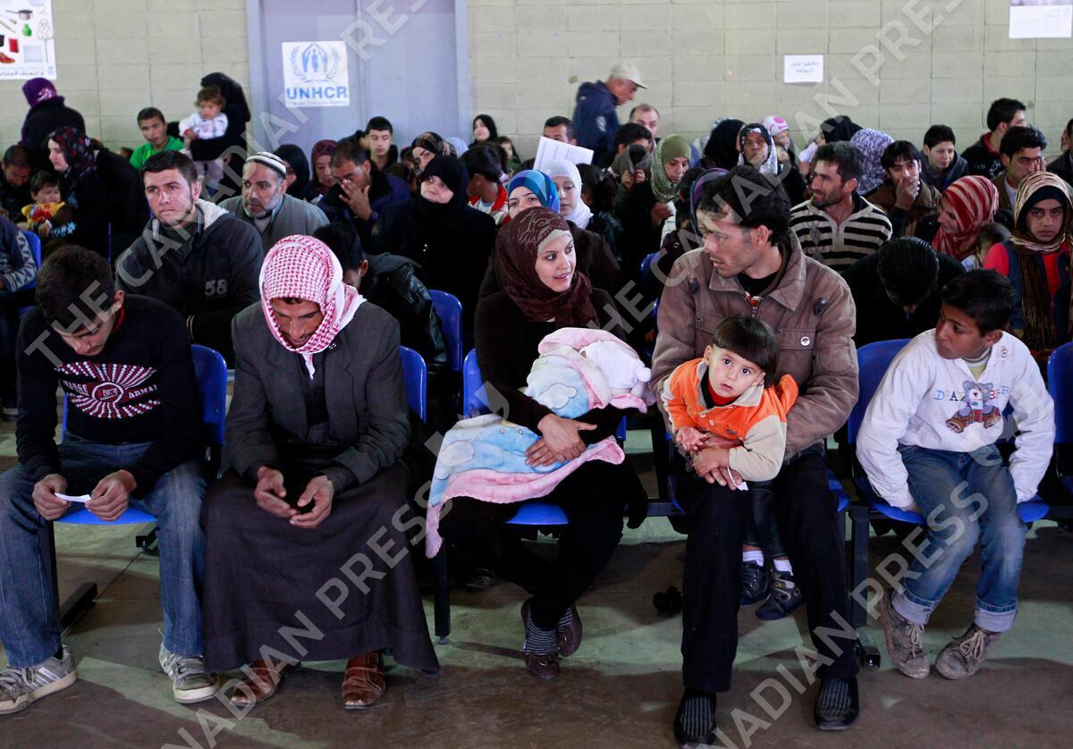 FILE- Syrian families wait to register at the UNHCR center in the northern city of Tripoli, Lebanon, in this file photo dated Wednesday, March 6, 2013. The number of U.N.-registered refugees topped 1 million in March 2013 and half of them are known to be children, as Syrians flee from their war-ravaged country, and the United Nations’ refugee agency warn that Syria is heading towards a "full-scale disaster." (AP Photo/Bilal Hussein, FILE)
