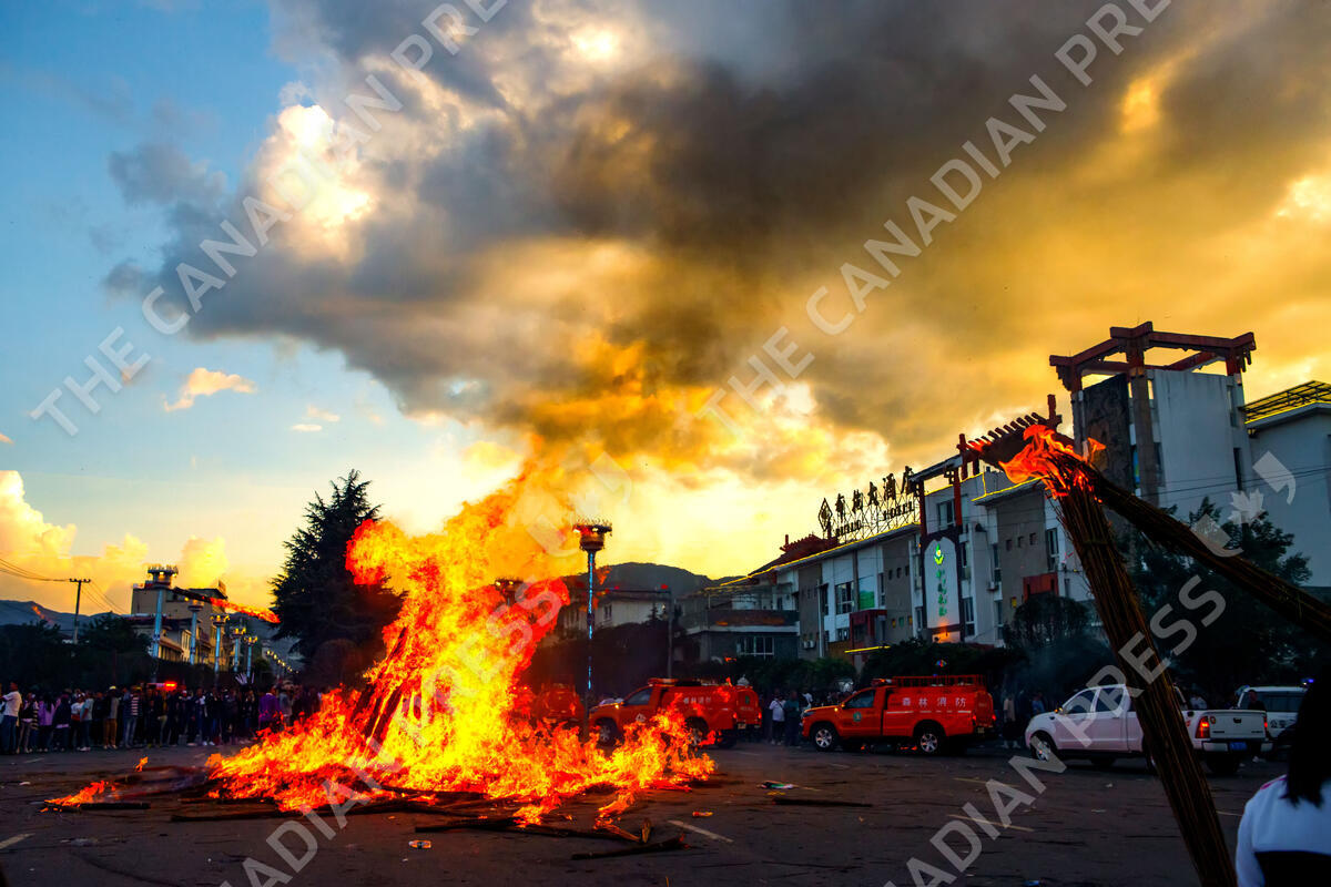 July 26, 2023, Sichuan, Sichuan, China: SICHUAN, CHINA - JULY 23, 2023 - People light torches to celebrate the Torch Festival at a Square in Liangshan Yi autonomous prefecture, Southwest China s Sichuan Province, July 23, 2023. The Torch Festival has become the largest, the most spectacular scene, the largest number of participants, and the most national characteristics of the local traditional festivals, known as the ''Oriental Carnival' (Credit Image: © Cfoto/DDP via ZUMA Press) *** Local Caption *** 20059069