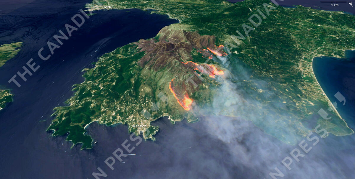 July 26, 2023, Corfu, Greece: This image, acquired by a Copernicus Sentinel-2 satellite on 25 July 2023, shows the latest major wildfire episode in Corfu, Greece, that broke out on 23 July. 2,500 tourists and residents from nearby villages have been evacuated as firefighters continue to battle the fire, which is not yet under control...The Copernicus EMS Rapid Mapping Team has been activated (EMSR677) to support the monitoring and management of the fire. According to the latest data from the European Forest Fire Information System (EFFIS), 43,803 hectares of land have already been destroyed in Greece this year...Where: Corfu, Greece.When: 26 Jul 2023.Credit: European Union/Copernicus Sentinel-2 Imagery/Cover Images..**EDITORIAL USE ONLY. MATERIALS ONLY TO BE USED IN CONJUNCTION WITH EDITORIAL STORY. THE USE OF THESE MATERIALS FOR ADVERTISING, MARKETING OR ANY OTHER COMMERCIAL PURPOSE IS STRICTLY PROHIBITED. MATERIAL COPYRIGHT REMAINS WITH STATED AND/OR SUPPLIER. (Credit Image: © Cover Images via ZUMA Press)