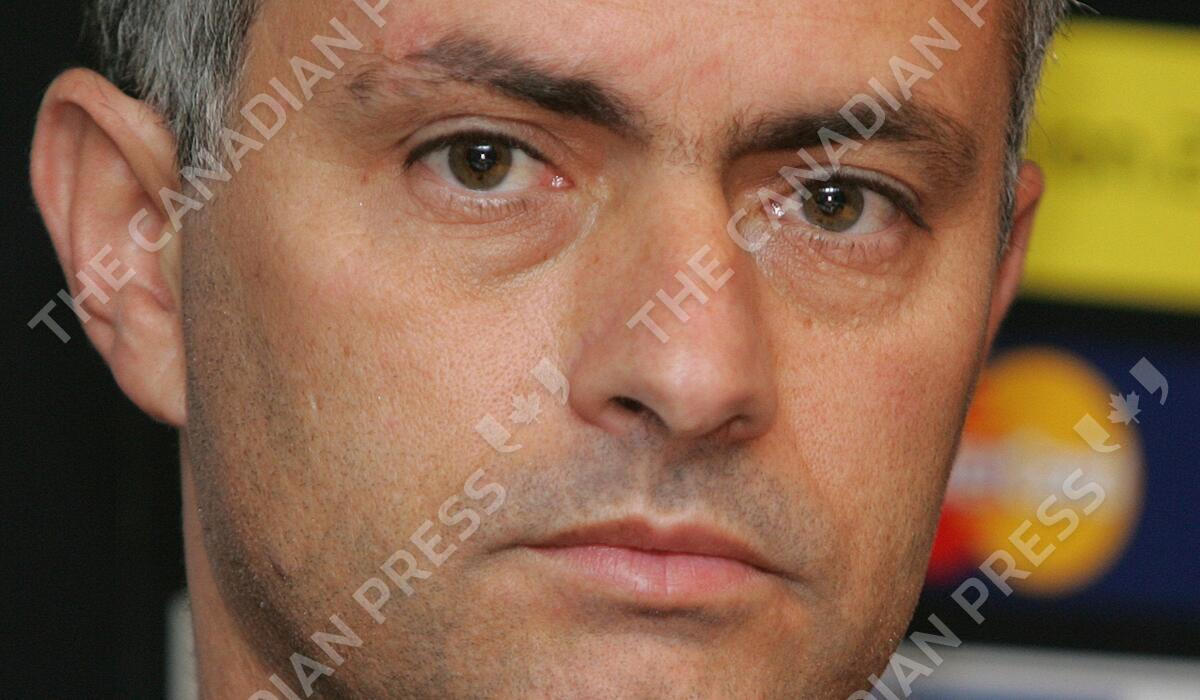 Chelsea's coach Jose Mourinho, sits and listens to a question at a media conference at Chelsea's Stamford bridge ground in west London late Monday Dec. 5, 2005. Chelsea play Liverpool in their UEFA Champions League soccer match Tuesday Dec. 6, both teams have qualified for the next stage of the competition . (AP Photo/Alastair Grant)