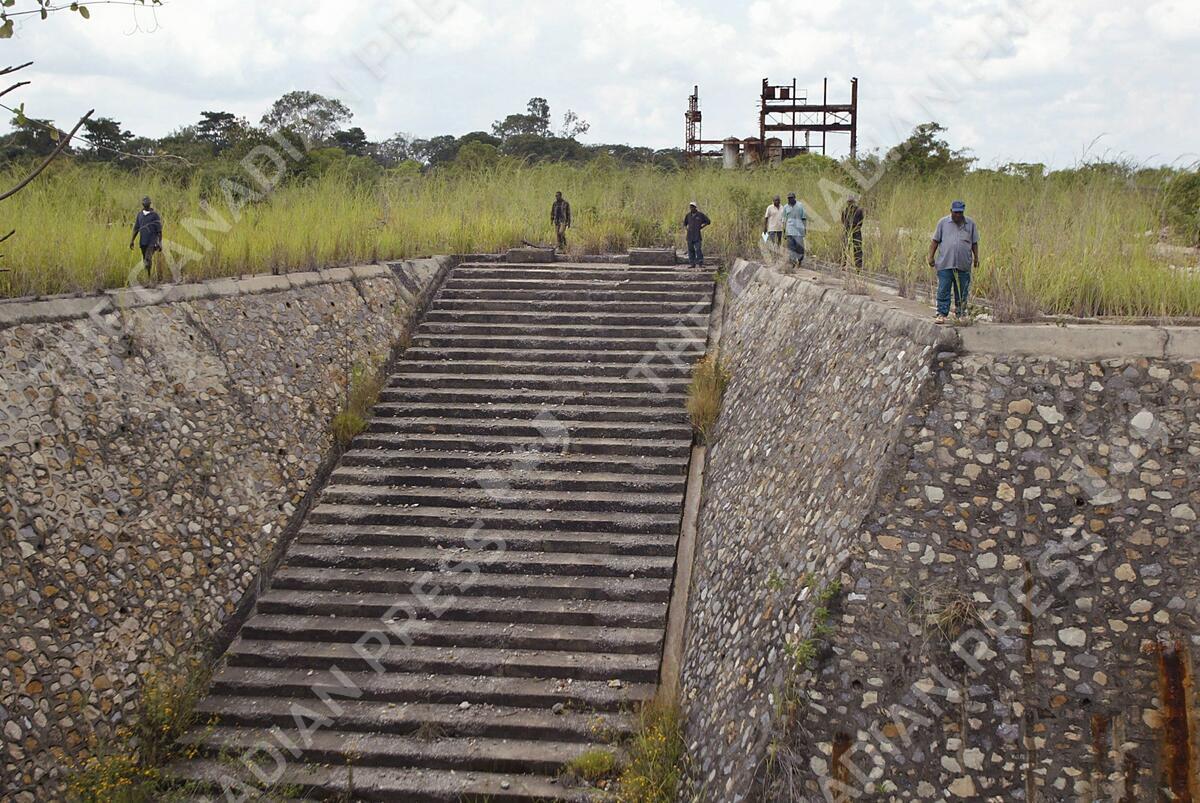 ** FILE ** Men walk around the area where uranium was once mined, at the Shinkolobwe Cobalt mine, 35km from the town of Likasi, in southeastern Congo in this Saturday, April 10, 2004 file photo. Britain's Brinkley Mining PLC signed a contract for uranium exploitation in Congo on Monday, July 9, 2007, promising a US$3 million start-up investment into a partnership with the government. (AP Photo/Schalk van Zuydam, File)