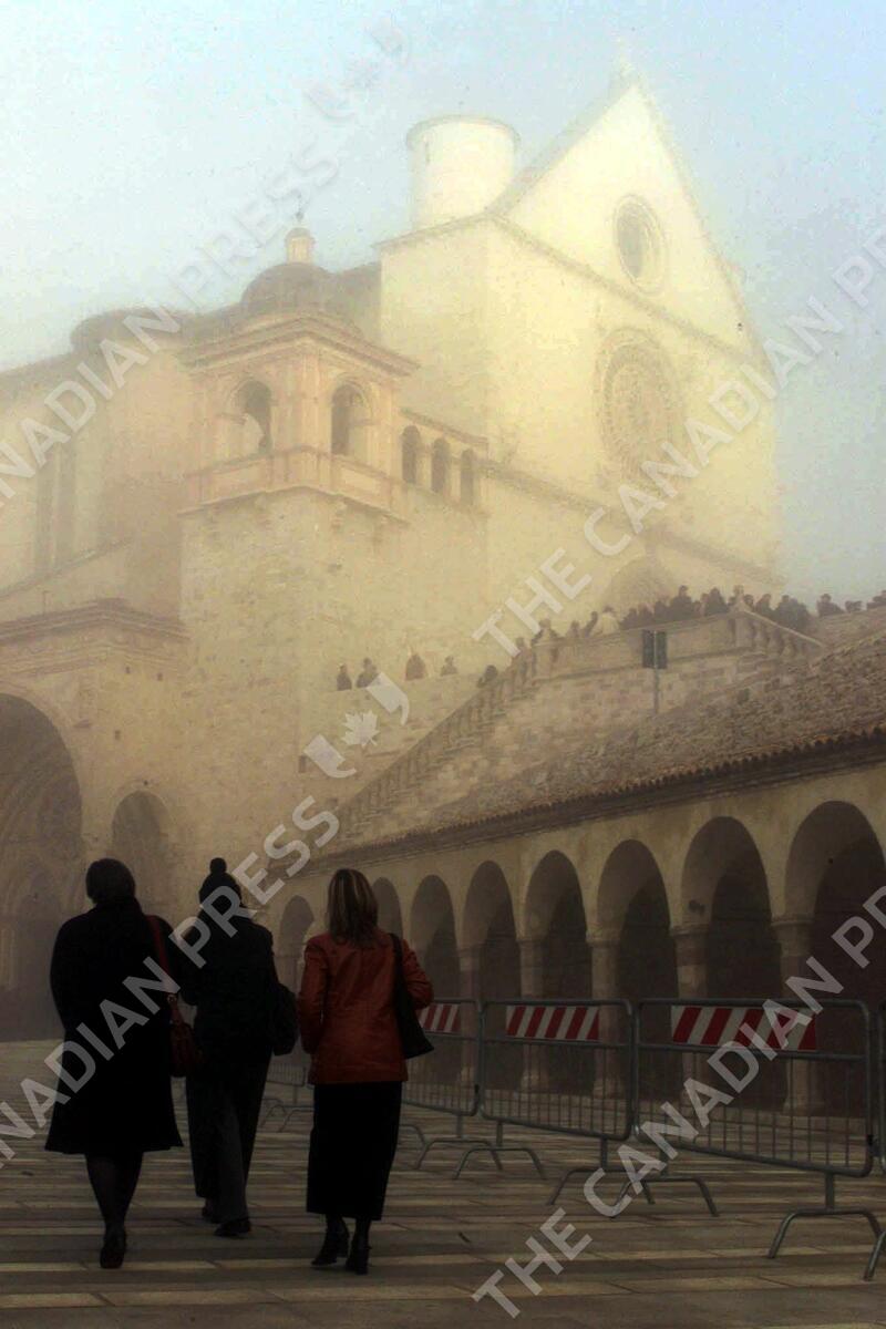 ** FILE ** People walk toward the Basilica of St. Francis of Assisi, Italy, in this Nov. 28, 1999 file photo. Pope Benedict XVI has curbed the autonomy of the Franciscan friars in running the famed St. Francis Basilica in Assisi, decreeing they must now get permission for their activities from the local bishop, a decision announced Saturday, Nov. 19, 2005. (AP Photo/Pier Paolo Cito)