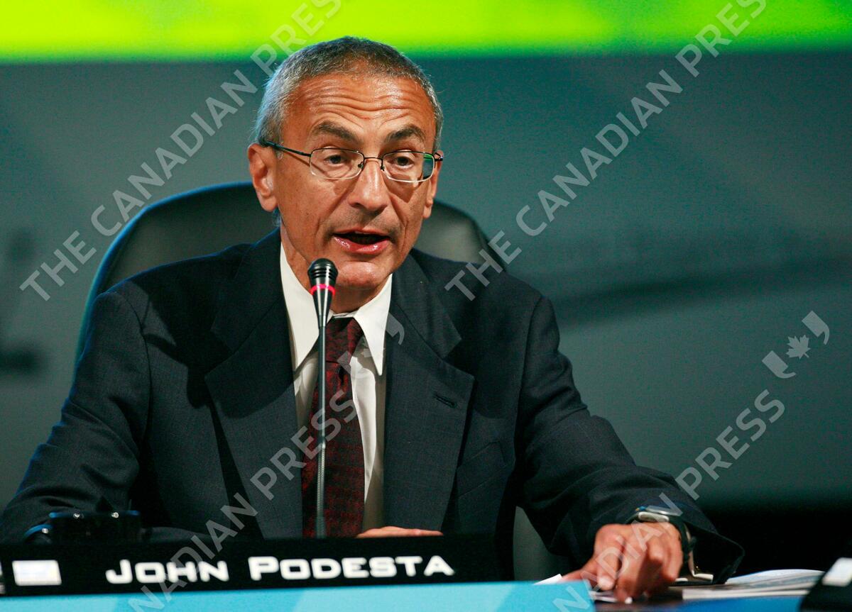 FILE - In this Monday, Aug. 10, 2009, file photo, Center for American Progress Action Fund President & CEO John Podesta speaks at the National Clean Energy Summit 2.0, at The Cox Pavillion in Las Vegas. Podesta, a former chief of staff to President Bill Clinton and a trusted Democratic operative, will join the White House staff as a senior counselor to President Barack Obama, two persons familiar with the move said late Monday, Dec. 9, 2013. (AP Photo/Eric Jamison, File)