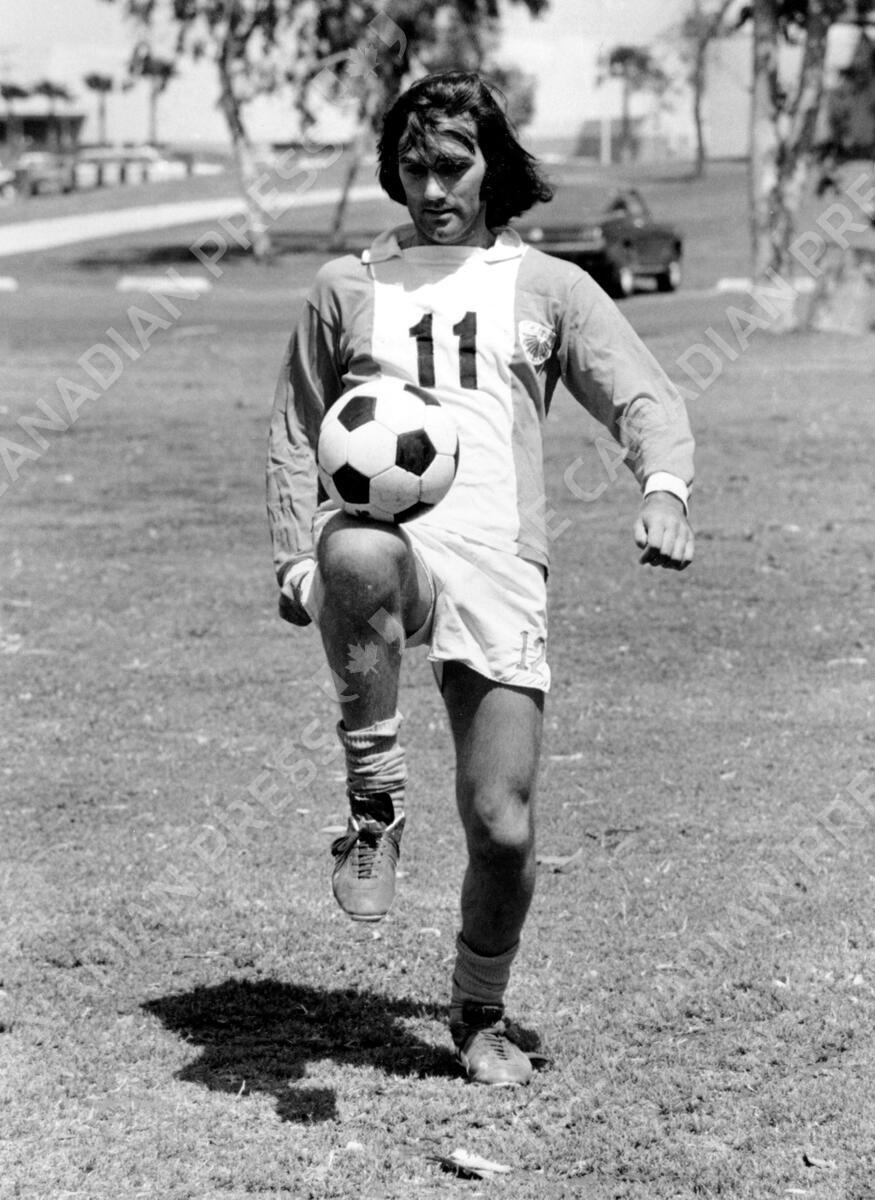 George Best balances a ball on his knee during a practice session with the Los Angeles Aztecs of the North American Soccer League in this April 1976 photo. Best's health deteriorated dramatically on Wednesday, Oct. 26, 2005 his former wife Alex said, renewing fears that his body was finally giving in to the hard drinking lifestyle that had forced the soccer star into having a liver transplant. (AP Photo) ** B/W ONLY **