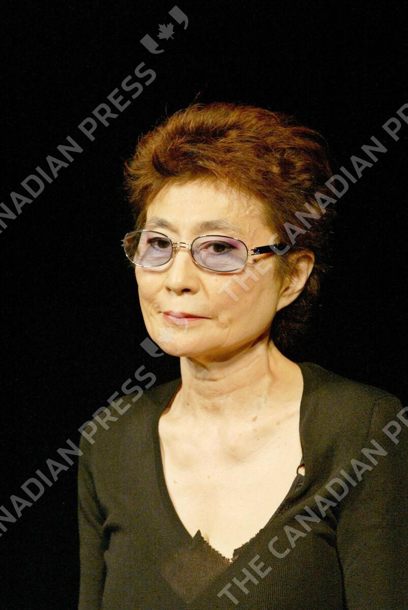 *** FILE *** Japanese-born artist Yoko Ono's is seen as she repeats her 1960s performance "Cut Piece", in Paris Monday Sept.15, 2003. In a full-page advertisement appearing Sunday Nov. 26, 2006 in The New York Times, Ono urges readers to mark the Dec. 8 anniversary by apologizing to those who have suffered because of violence and war. (AP Photo/Michel Euler)
