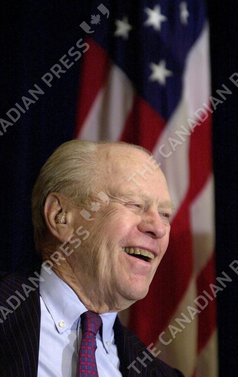Former President Gerald Ford prepares to address a National Press Club luncheon in Washington in this Monday, June 3, 2002 photo. Former President Ford, the 38th and only president in America's history never elected to nationwide office, turns 90 years old Monday, July 14, 2003. (AP Photo/Kenneth Lambert)