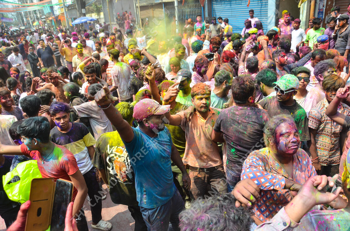 March 26, 2024, Guwahati, Assam, India: People play with colours during Holi celebrations in Guwahati,India on Monday, March 25, 2024. (Credit Image: © Hafiz Ahmed/ZUMA Press Wire)