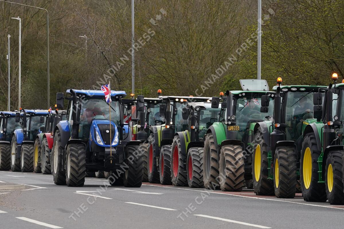 RETRANSMITTING DATE CORRECTED A convoy of farmers in tractors gather on the A20, near Wrotham, in Kent, before heading to London to join a protest in Westminster raising awareness of the difficulties for the British farming industry. Picture date: Monday March 25, 2024.
