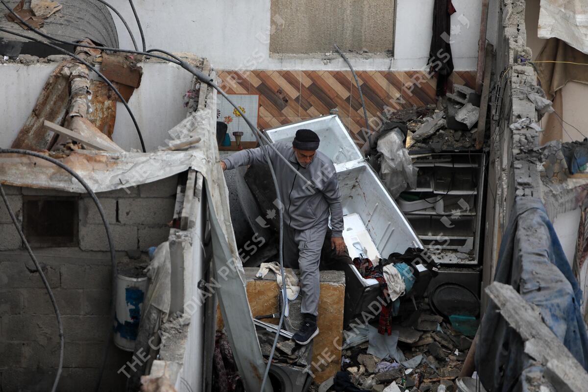 February 27, 2024, Rafah, Gaza Strip: A man walks through the rubble after an Israeli airstrike in the southern Gaza Strip. The Palestinian death toll in the Gaza Strip has risen to 29,878 since Oct. 7, 2023, the Hamas-run Health Ministry said in a press statement on Tuesday. (Credit Image: © Yasser Qudih/Xinhua via ZUMA Press)